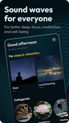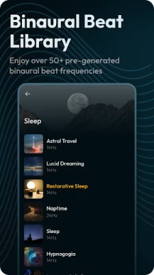 Binaural Beats for improved sleep, focus and nature sounds for ambience.
