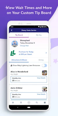 -Create your very own personal Tip Board to track estimated wait times for your favorite experiences and more.