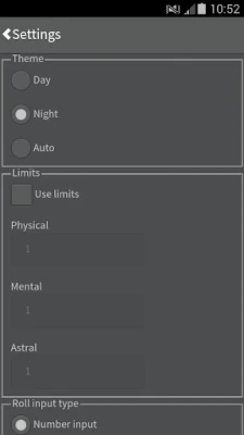 Featuring: -Clean and intuïtive user interface -Second chance mechanic -Exploding sixes mechanic -Customizable limits -Dynamic night and day layout