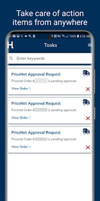 • Take care of action items from anywhere, including Maintenance PO approval, stock purchase approval, and PriceNet order approval.