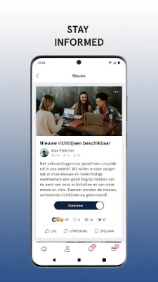 As an employee, you can quickly and easily share knowledge, new ideas and internal successes with the rest of your team, department or organization. You can enrich your messages with images, videos and emoticons. Easily follow the messages of your colleagues and the organization.