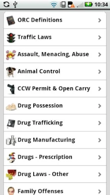 * ORC cheat sheet for traffic offenses; OVI; drug possession; drug trafficking; drug manufacturing; prescription drugs; tobacco; liquor laws; CCW permit holder violations and reciprocity agreements; statute of limitations; Castle Doctrine; ORC definitions (e.g. deadly weapon, offense of violence, etc.); conspiracy, attempt and complicity; degrees of mental culpability; organizational liability.