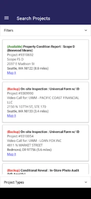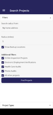 - Find available projects based on your current location, a particular zip code, or your home address.